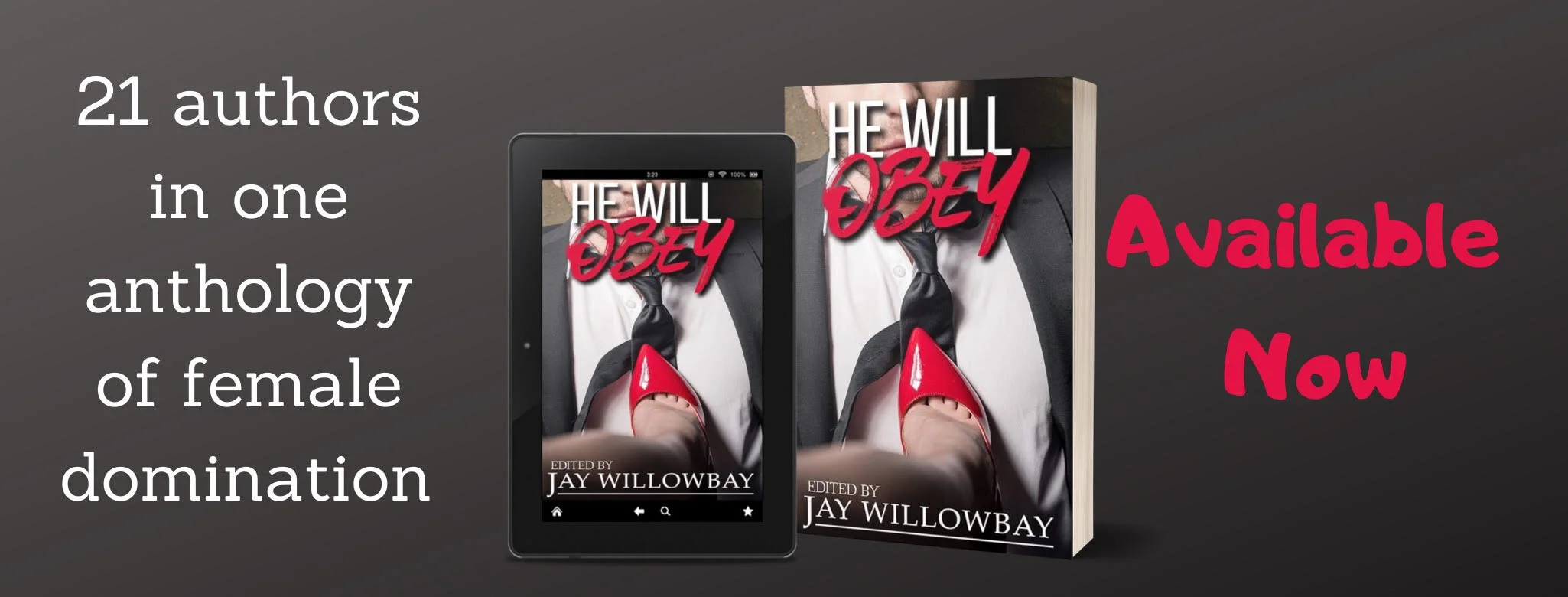 He Will Obey is available now exclusively on Amazon: https://www.amazon.com/He-Will-Obey-Jay-Willowbay-ebook/dp/B08Q4KPCKK/ref=sr_1_1?dchild=1&keywords=he+will+obey&qid=1612362577&sr=8-1#customerReviews
